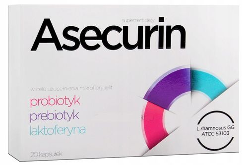 Suplement diety Asecurin jest preparatem zawierającym połączenie trzech składników – probiotyku, prebiotyku i laktoferyny.