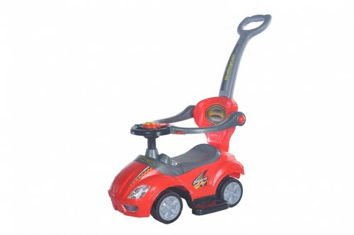 Samochód, jeździk dla dziecka z pełnym wyposażeniem, ze skrętnymi przednimi kołami.