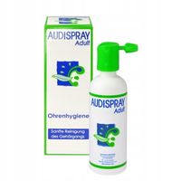 Zastosowanie: w naturalny sposób upłynnia i rozpuszcza nadmiar woskowiny, kurzy i zanieczyszczeń oraz zapobiega powstawaniu korków woskowinowych w zewnętrznym kanale słuchowym. Audispray pozwala uniknąć konieczności stosownia patyczków bawełnianych, które powodują przesuwanie woskowiny w kierunku błony bębenkowej. Preparat można stosować u dorosłych oraz dzieci od 6 lat.