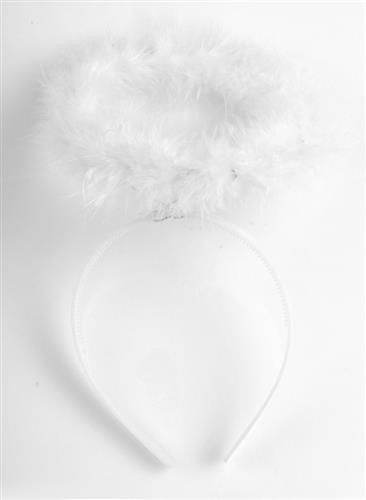 AUREOLA ANIOŁA Anielska aureola do przebrania aniołka.Idealna na Jasełka, bal karnawałowy lub do sesji zdjęciowej. Może również służyć jako dekoracja do stroika świątecznego.Opaska na głowę stabilnie utrzymuje aureolę, ma rozmiar uniwersalny. Aureola pokryta jest prawdziwym pierzem.