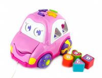 Nasze kolorowe zabawki edukacyjne dla dzieci doskonale sprawdzają się w roli sortera – znajdujące się po bokach otwory na klocki zachęcają maluszka do wypełniania zadania, przyczyniając się jednocześnie do jego wszechstronnego rozwoju. Wesołek wypowiada nazwę kształtu wrzucanego klocka. Radosne autko zachęca dziecko do zabawy, wydając zabawne dźwięki i grając melodyjki.