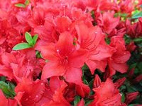 Kwiaty dosyć duże, w kolorze jaskrawoczerwonym z ciemniejszym wzorkiem na górnym płatku. Zebrane w efektowne kwiatostany na szczytach pędów. Kwitnie obficie w maju i czerwcu.