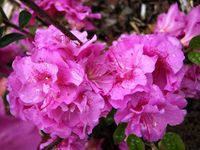 Karłowy, zimozielony krzew o dosyć luźnym pokroju i drobnych liściach. Dorasta do około 40-50 cm wysokości. Liście żywozielone, jajowate, częściowo opadające na zimę. Kwiaty barwy różowej z ciemniejszym, amarantowym wzorkiem na górnym płatku, średniej wielkości. Kwitnie obficie na przełomie V i VI.