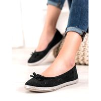 SHELOVET Balerinki Damskie Czarne Tekstylne
