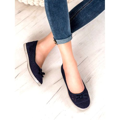 SHELOVET Balerinki Damskie Niebieskie Tekstylne