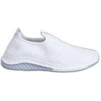 Klasyczne damskie buty sportowe typu Slipony. Ich cholewka powstała z białej tkaniny pokrytej ażurowym wzorem. Miękki zabudowany zapiętek ułatwia ich wsuwanie na stopę. Spodnią część stanowi 3,5-centymetrowa biała platforma z szarymi wstawkami z przodu i z tyłu. Na samym dole znajduje się bieżnikowana podeszwa.