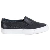 Czarne trampki damskie J. Star posiadają ażurową cholewkę, która zapewnia im przewiewność, dzięki czemu jest to idealny wybór na ciepłe dni. Są to buty wsuwane, które mają praktyczne, gumowe wstawki po bokach cholewki. 2,5-centymetrowa platforma stanowi doskonałą izolację od podłoża, co zwiększa komfort w czasie chodzenia.
