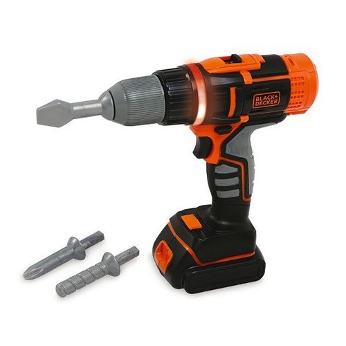 Elektroniczna wiertarko-wkrętarka ze światłem, z trzema wymiennymi końcówkami.