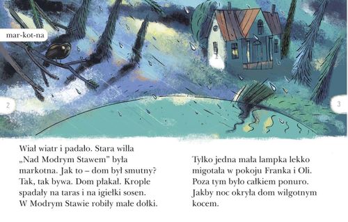 Franek i Ola, bohaterowie książki, mieszkają w willi "Nad Modrym Stawem". Deszczowe lato nad jeziorem to dla nich - i dla ich rodziców - najgorsze, co mogło się zdarzyć. Jednak wszystko zmienia się, gdy pewnego dnia w willi pojawia się tajemnicza staruszka o bardzo dziwnych zwyczajach. Jej wizyta ratuje finanse rodziny, a wakacje stają się znacznie ciekawsze... Przeczytaj tę wciągającą opowieść z niezwykłymi ilustracjami Daniela de Latour - samodzielnie!