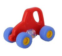 Ciekawa i bezpieczna zabawka dla najmłodszych "BABY GRIPCAR" - "TRAKTOR" od firmy POLESIE. Niewielki pojazd ma kształt traktora. Wyposażony jest w cztery gumowe kółka o chropowatej strukturze. Dzięki temu traktorek nie robi dużego hałasu, a dziecko z łatwością może nim poruszać po różnego rodzaju podłożu. Między przednimi, a tylnimi kołami umieszczono pojemnik w kształcie walca. Podczas poruszania pojazdem kolorowe kuleczki umieszczone w środku przyjemnie grzechoczą. Istnieje możliwość przywiązania sznurka do traktorka, co umożliwi jego ciągnięcie.