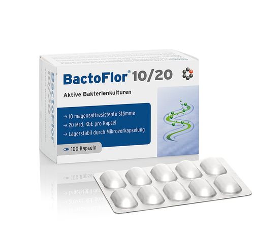 Dzięki wykorzystaniu w preparacie BactoFlor® 10/20 mocno skondensowanego kompleksu dziesięciu różnych kultur bakterii możemy w sposób skuteczny wspierać mikroflorę jelit.