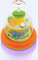 Bączek z kolorowymi kuleczkami. Zabawkę bardzo łatwo wprawić w ruch. Wystarczy wcisnąć przycisk w kształcie biedronki, aby uruchomić wirujące piłeczki i usłyszeć łagodne melodie. Zabawka wpłynie na rozwój motoryki oraz percepcji dziecka. Bączek na pewno stanie się towarzyszem kreatywnych zabaw.UWAGA! W zabawce znajdują się baterie testowe o małej pojemności, co może być przyczyną słabszego działania. Zaleca się wymianę na nowe, alkaliczne. Jeżeli zabawka nie funkcjonuje prawidłowo, należy wyłączyć zabawkę i włączyć ponownie. Jeśli problem nie ustąpi należy wymienić baterie na nowe.UWAGA! Baterie zawarte w zabawce są także przeznaczone do demonstracji w sklepie. Może się zdarzyć, że baterie się wyczerpią przed zakupem przez klienta i klient będzie musiał wymienić zawarte baterie na nowe w celu uzyskania poprawnego działania zabawki.