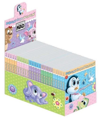 Display "Bajeczki do poduszeczki", to pakiet zawierający uroczą kolekcję książeczek dla maluszków, które poprawią im nastrój, ukołyszą do snu, a przy okazji nauczą dobroci, miłości i wrażliwości. Jeden display zawiera 25 sztuk różnych tytułów bajeczek.
