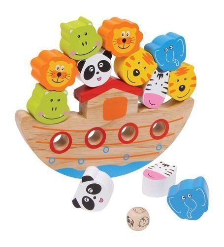 Balansująca zabawka Arka jest oryginalną drewnianą atrakcją dla dzieci. Z pewnością spodoba im się, jako alternatywa dla posiadanych pluszaków. Jest świetną propozycją dla dzieci zręcznych albo ćwiczących zręczność. Balansująca Arka Noego to prawdziwe wyzwanie dla maluchów! Cała sztuka polega na tym, by na bujającej się arce ułożyć jak najwięcej zwierzęcych główek. Musicie bardzo się postarać, ponieważ każde zwierzę chce dostać się na pokład statku. Wykonana z polakierowanego drewna arka, cieszy oko zabawnym wyglądem. Gra ćwiczy koncentrację oraz cierpliwość. Doskonała rozrywka dla całej rodziny.