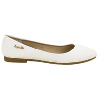 Pięknie wykończone białe balerinki o klasycznym kształcie i wygodnej podeszwie z wyraźnym bieżnikiem. Kunsztowna koronka po bokach dodaje butom uroku, a kokardka z syntetycznego sznureczka ze złotymi końcówkami doskonale je podkreśla. Wygodne, oddychające wnętrze buta pozwala zachować komfort nawet w upalne dni. Buty świetne na co dzień.