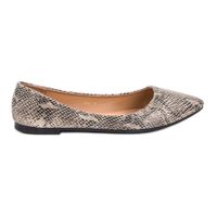 Damskie baleriny z wzorem imitującym wężową skórę. Buty o minimalistycznym kroju, jednak bardzo rzucające się w oczy ze względu na niezwykle modny zwierzęcy motyw. Baleriny świetnie sprawdzą się do wielu codziennych stylizacji casualowych, zapewniając wygodę i stanowiąc bardzo stylowy dodatek do strojów.