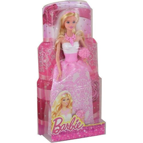 Dziewczynki mogą bawić się w swoje ulubione na zawsze razem z tą zachwycającą lalką Barbie Panna Młoda. Klasyczna suknia ślubna bez ramiączek, z obszernym dołem, urozmaicona modnymi akcentami oraz mieniącymi się zdobieniami (obowiązkowo różowymi!) sprawia, że Barbie jest wspaniałą nowoczesną panną młodą! Załóż pannie młodej zachwycający naszyjnik i opaskę z welonem, aby ruszyła przez tłum ślubnych gości wprost do wyobraźni dziewczynek. Lalka nie stoi samodzielnie.