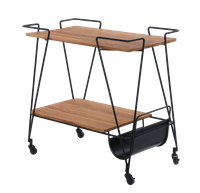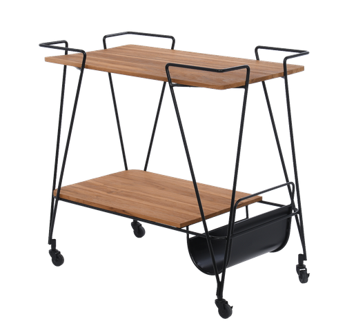 Barek Cape Town to elegancki i praktyczny dodatek nie tylko do salonu, ale również na taras. Posiada stalową ramę w czarnym kolorze oraz dwie tace wykonane z drewna teakowego – górną i dolną z podwyższonymi rantami. Zmieścisz na nich napoje, naczynia oraz przekąski dla gości. W zależności od Twojej wyobraźni, artykuł może odgrywać różne role – na tarasie jest stolikiem pomocniczym, w salonie poręcznym wózkiem do serwowania potraw, a w ogrodzie estetyczną aranżacją zielonej przestrzeni.