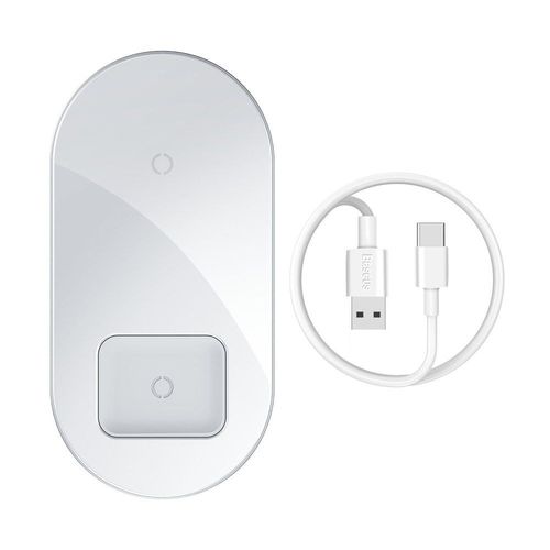 Ten stylowy i funkcjonalny gadżet to najnowsza bezprzewodowa ładowarka indukcyjna firmy Baseus, dająca możliwość ładowania Airpods'ów oraz telefonu jednocześnie.