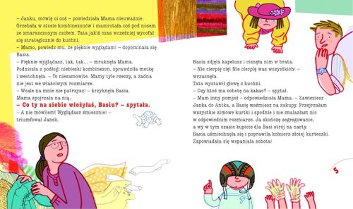 Mama Basi robi porządki w ubraniach, ale nigdzie nie może znaleźć pasującego na Basię kombinezonu narciarskiego. W końcu wysyła tatę i dziewczynkę do sklepu. Z czym wrócą z zakupów? Jedno jest pewne – nie będzie to kombinezon…