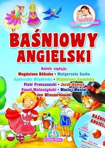 Bajkowy angielski przenosi nas w świat pełen magii i najpiękniejszych bajek. Książka przełamuje bariery językowe. Doskonale łączy świat bajkiz nauką języka angielskiego. Bajkowy angielski jest okazją do spotkania z uroczym Czerwonym Kapturkiem, sprytnym Kotem w Butach,spełniającą życzenia Złotą Rybką czy maleńką Calineczką. Piękne ilustracje pobudzają dziecięcą wyobraźnię i zachęcają do sięgania po przygody ulubionych bohaterów.Na płycie CD, dołączonej do książki, każda bajka nagrana jest w polskiej i angielskiej wersji językowej. Czytają je znani i lubiani aktorzy, m.in. Magdalena Różczka, Małgorzata Socha, Agnieszka Więdłocha, Magdalena Zawadzka, Tomasz Karolak, Paweł Małaszyński, Jacek Koman, Jan Wieczorkowski i inni.Książka jest doskonałą propozycją na spędzanie wolnego czasu w gronierodzinnym, jak i świetną pomocą dydaktyczną dla nauczycieli. Pozwoli dzieciom, już od najmłodszych lat, rozpocząć naukę języka angielskiego i równocześnie poznawać światową klasykę baśni.Książka ta:pomaga doskonalić umiejętność słuchaniai czytania ze zrozumieniemćwiczy koncentracjęwzbogaca i poszerza zasób słownictwapomaga w nauce i doskonaleniu języka angielskiegopomaga ćwiczyć i rozwijać pamięć odtwórcząto doskonała pomoc terapeutyczna bajkoterapiaw przedszkolach oraz szkołach"