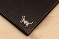Dodany do niego posrebrzany pin z wizerunkiem psa sprawia,