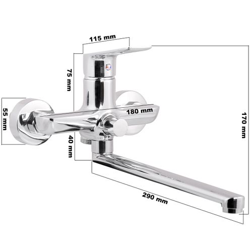Bateria ścienna przeznaczona do zastosować kuchennych - gospodarczych. Bardzo długa wylewka znacznie ułatwia mycie lub napełnianie dużych naczyń.