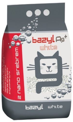 Bazyl Ag+ White to unikatowy naturalnie biały bentonit o najwyższych parametrach, wzbogacony o dobroczynne nano srebro, które jako naturalny antybiotyk ma własności antyseptyczne i dezynfekujące. Jony nano srebra działają permanentnie i zapobiegają rozwojowi bakterii i grzybów. Żwirek Bazyl Ag+ White posiada jednorodną drobną frakcję. Nie pyli, nie przykleja się do kocich łapek. Perfekcyjnie się zbryla, tworząc łatwe do usunięcia bryłki. Wchłania wilgoć i woń, pozostawiając przyjemną świeżość. Dodatek nano srebra sprawia, że kocia kuweta jest miejscem w pełni higienicznym i wolnym od zarazków oraz przykrych zapachów. Żwirki bentonitowe Bazyl Ag+ są zupełnie bezpieczne nawet dla małych dzieci i co równie ważne, przyjazne dla alergików!