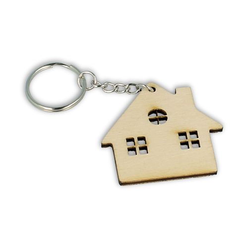 Drewniany brelok w kształcie domku do samodzielnego montażu.