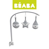 Łuk z zabawkami francuskiej marki BEABA, przeznaczony do leżaczka Bouncer Up & Down II tej samej marki. Idealny do mobilizacji sensorycznej dzieci już od pierwszych dni ich życia. Łatwy w montażu – wyposażony w pierścień, który można założyć na stelaż leżaczka z dowolnej (prawej lub lewej) strony i na dowolnej wysokości. Możliwość obracania łuku pozwala na zmienianie jego pozycji, zabawki mogą się dzięki temu znajdować bliżej lub dalej, na poziomie oczu lub w okolicach stóp, w zależności od potrzeb maluszka oraz aby pobudzić jego ciekawość i stymulować rozwój motoryczny. Kiedy malec uśnie lub kiedy chcesz go wyjąć z leżaczka, możesz również bez domontowania odsunąć łuk na bok. Piękne, mięciutkie i estetycznie wykonane zabawki – gwiazdka, kółko oraz kropelka utrzymane są w odcieniu ciepłej szarości. Mają biały pasek przez środek i po parze czarnych oczek. Poruszane, wydają przyjemne dla ucha dźwięki, zachęcające do dalszej zabawy. W zawieszce-kółku wszyte jest ponadto w pełni bezpieczne lusterko. Zabaweczki można odczepiać (do zawieszek przyczepione są na rzep) i używać oddzielnie, jak grzechotek czy małych przytulanek. Zdejmowany jest też materiał-pokrycie łuku – i on, i zabawki można prać ręcznie, dzięki czemu całość jest łatwa do utrzymania w czystości.