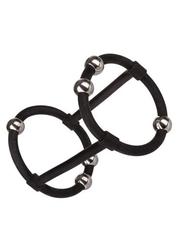 Made to enhance, escalate and intensify ecstasy every time you slip on the Steel Beaded Silicone Enhancer Cage. The sturdy, yet stretchy silicone dual enhancer cage supports, while the moveable steel pleasure beads thrill you and your lover. The ultra-stretchy dual erection support ring is sure to enhance pleasure by increasing stamina, sensitivity and girth. Look forward to an explosive pleasure experience with every teasing stroke of the steel pleasure beads with adjustable and moveable placement. This strong, supportive ring cage indulges your man with increased stamina, girth and sensitivity, while you can savor his increase stamina and girth, the thrilling stimulation beads tease you towards an orgasmic wonderland.