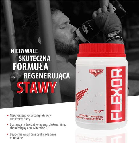 Jeżeli ćwiczysz intensywnie a prawidłowe funkcjonowanie stawów nie jest Ci obojętne powinieneś sięgnąc po Beltor - Flexor. Jest to kompleksowy suplement diety, który wspomaga pracę układu ruchu. U osób obciążonych intensywnym wysiłkiem fizycznym możliwość wystąpienia kontuzji i urazów jest większa niż u osób prowadzących "siedzący tryb życia" dlatego tak ważne jest dostarczanie odpowiednich składników, które wzmocnią stawy, wiązadła i chrząstki. Suplement wspiera produkcję kolagenu, co powoduje prawidłowe smarowanie stawów.