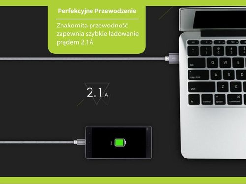 Wysokiej jakości kabel UBS z najnowszym złączem Typu C. Wykonany z wysokogatunkowej miedzi zapewniającą najwyższą przewodność, dzięki czemu kabel może pracować nawet na 2.1A. Przy czym nie zostanie uszkodzony.