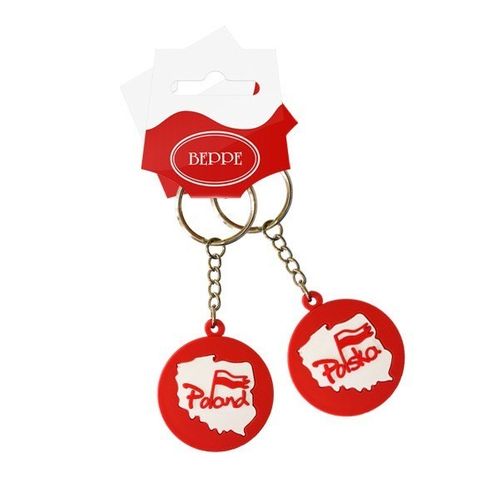 Dwustronny brelok na klucze z mapą i napisem Polska, Poland.