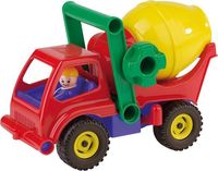 Kolorowa betoniarka o długości 27 cm, wykonana z elestycznego plastiku wysokiej jakości, spełniającego normy europejskie. Funkcjonalne autko, bęben można obracać oraz przechylić aby wysypać np. piasek.