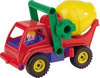 Kolorowa betoniarka o długości 27 cm, wykonana z elestycznego plastiku wysokiej jakości, spełniającego normy europejskie.