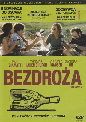 Cudowny, zabawny ... smakowity!" - Newsweek, "Przepełniony subtelnym dowcipem... film, którym należy się delektować." - The New York Times, Komedia o męskiej przyjaźni, kobietach i dobrym winie., Za sprawą tej upajającej, odurzającej i inteligentnej komedii, nominowanej do 5 Oscarów (w tym za Najlepszy Film), reżyser Alexander Payne (Wybory, Schmidt) serwuje nam jeden z najlepiej przyjętych przez krytykę i widzów tegoroczny film o wzlotach, upadkach i bezdrożach trudnej podróży przez życie., Dwóch dojrzałych przyjaciół, po trzydziestce z okładem, Miles (Paul Giamatti) i Jack (Thomas Haden Church) wyrusza w podróż po kalifornijskich winnicach, Delektując się najlepszymi winami poznają jednocześnie smak samotności, niespełnionych marzeń i kaprysów losu., "Bezdroża" to tragikomiczna opowieść, w której wino, kobiety i... śmiech, mieszają się ze łzami, chwilami zadumy i refleksji.