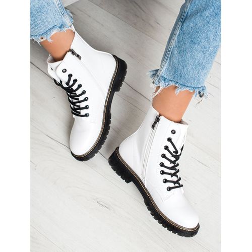 Small Swan Botki Obuwie damskie Kobiety Białe Skóra ekologiczna