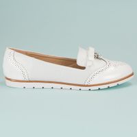 Poszukujesz butów, które będą jednocześnie wygodne, stylowe i nonszalanckie? Dobrą propozycją dla Ciebie mogą być białe mokasyny marki Super Me. To buty wykonane z wysokiej jakości skóry ekologicznej, które doskonale sprawdzą się zarówno do spodni, jak i sukienek. Kolor biały jest bardzo uniwersalny, a subtelne zdobienia dodają butom uroku.