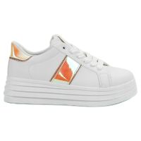 Te buty to przede wszystkim ponadczasowość. Ich klasyczny fason modny jest już od wielu lat i nie zapowiada się na to, by coś w tej kwestii miało ulec zmianie. Obuwie posiada masywną platformę, która świetnie izoluje od podłoża oraz zapewnia odpowiedni komfort. Holograficzne zdobienie dodaje butom niepowtarzalnego charakteru.