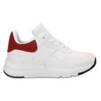 Białe buty z elementami czerwieni wyglądają bardzo subtelnie i kobieco. Podeszwa z bieżnikiem zapewnia wygodę i bezpieczeństwo nawet na nierównej nawierzchni.