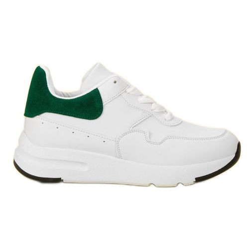 Białe, sportowe buty o wyjątkowo smukłej linii, ozdobione zieloną wstawką nad lekko usztywnianym zapiętkiem. Miękkie wnętrze zostało wykonane z materiałów umożliwiających prawidłową cyrkulację powietrza wewnątrz buta. Dobra jakość komponentów oraz gruba, profilowana podeszwa pozwalają na odpowiednią amortyzację i komfort podczas noszenia.