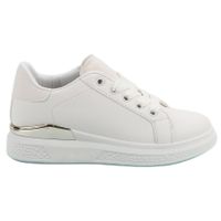 Białe sneakersy od ButyModne zachwycą każdą kobietę, która gustuje w sportowych stylizacjach. Dzięki zdobieniu w postaci połyskującego elementu, buty wyróżniają się spośród innych sportowych butów. Sneakersy sprawdzą się zarówno na co dzień oraz podczas weekendowych wypadów za miasto. Ich neutralny kolor sprawia, że można łączyć je z różnorodnymi kolorami i wzorami.