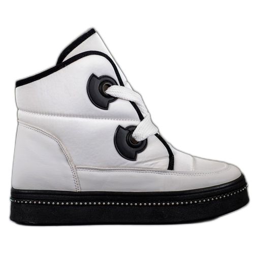 Firma Weide od lat produkująca obuwie damskie na tegoroczny okres jesienno-zimowy proponuje białe śniegowce. Buty w całości zostały wyprodukowane z materiału tekstylnego. Ocieplenie od wewnątrz perfekcyjnie izoluje stopę przed zimnem i wilgocią, a wiązanie idealnie dopasowuje buty do stopy, co skutkuje wysokim komfortem ich użytkowania.