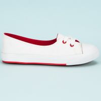 Białe tenisówki w dziewczęcym kroju, z czerwonymi detalami to idealne obuwie na co dzień. Buty doskonale skomponują się nie tylko z szortami i dżinsami, ale również ze spódnicami i sukienkami. Są lekkie i dopasowane do stopy. W całości uszyte zostały z naturalnej tkaniny, dzięki czemu stopa nie przegrzewa się i nie poci.