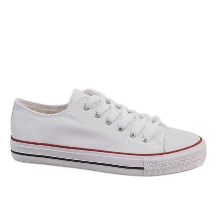 Białe, klasyczne trampki od producenta obuwia ButyModne to produkt, który świetnie sprawdzi się w codziennych stylizacjach o sportowym charakterze. Buty mogą być z powodzeniem traktowane jako dodatek do spodni oraz szortów. Zapewniają komfort oraz wygodę nawet podczas całodziennych, pieszych wędrówek.