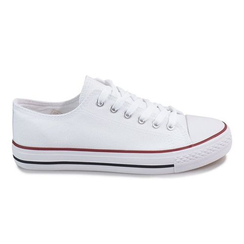 Trampki XN44 to tak zwana prosta klasyka. Wykonane z tworzywa skóropodobnego buty zachwycają ponadczasowym wyglądem. Połączenie białego tworzywa z czerwoną lamówką i czarnymi elementami sprawia, że trampki te można dopasować do każdej sytuacji. Idealnie nadają się jako obuwie codzienne. Wygodne sznurowanie pozwala na zmianę ich wyglądu w zależności od stylu wiązania.