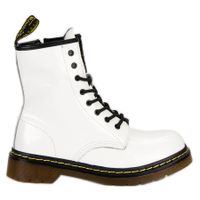 Ta para udowadnia, że glany doskonale prezentują się nie tylko na nogach nastolatek, lecz także dojrzałe panie świetnie w nich wyglądają. Stylowa biel pasuje do wielu różnych stylów ubierania, Buty sięgają za kostkę, zostały wykonane z eko skóry i ocieplone w środku. a dodatkowo wyposażone w solidną podeszwę. Posiadaczce takich butów niestraszna żadna kałuża. Buty są wiązane na całej długości, co zapewnia stabilność stopy.