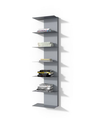 Ciekawa forma lakierowanej proszkowo blachy daje wiele możliwości wykorzystania biblioteczki Libra 2 w każdym designerskim wnętrzu. Ulubione przedmioty i poukładane na jej półkach książki dodadzą mu przytulności i domowego ciepła. Dostępne wersje kolorystyczne to: czerwony, czarny, szary i biały.Udźwig 1 półki w biblioteczce to ok 5kg. Biblioteczka jest do zawieszenia pionowego, można ja obrócić o 180 stopni i zawiesić - pozwalają na to 2 zaczepy na dole 2 na górze.RAL7045 - SZARY