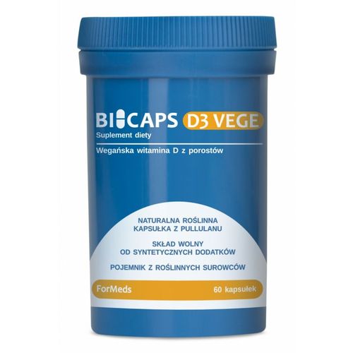 Składniki: inulina (korzeń cykorii), witamina D (mikrokapsułkowany cholekalcyferol z porostów), pullulan (otoczka kapsułki).